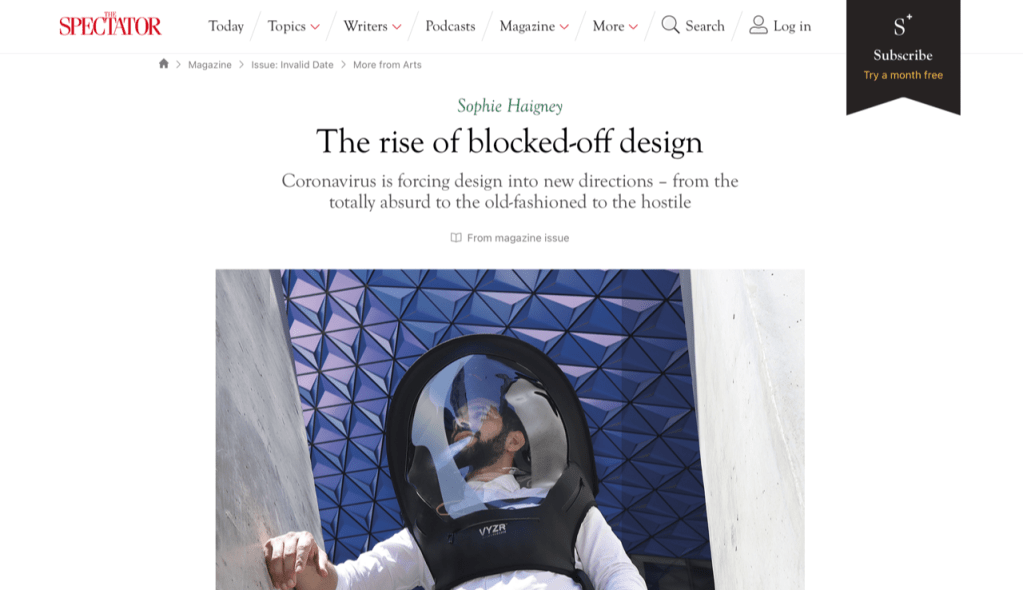 Britain’s leading weekly current affairs journal, The Spectator, was intrigued by the theme of the COVID-era workplace and interviewed us about the need for partitions and the return of the cubicle office for their article “The Rise of The Blocked-Off Design”. It made us think that some of these issues have been in the air well before COVID shut down the office. Open plan offices have long compromised people’s ability to concentrate due to increased proximity and noise, and some have even found them isolating with growing numbers of people resorting to headphones to avoid unwanted interruption.